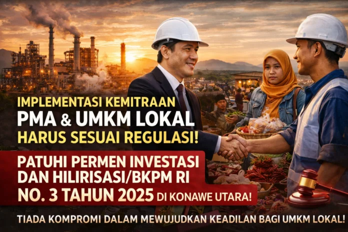 Konawe Utara, saksarapost.com – Penguatan kemitraan antara Penanaman Modal Asing (PMA) dan pelaku usaha mikro, kecil, dan menengah (UMKM) lokal di Konawe Utara menjadi isu strategis dalam mendorong pembangunan daerah yang inklusif dan berkeadilan.